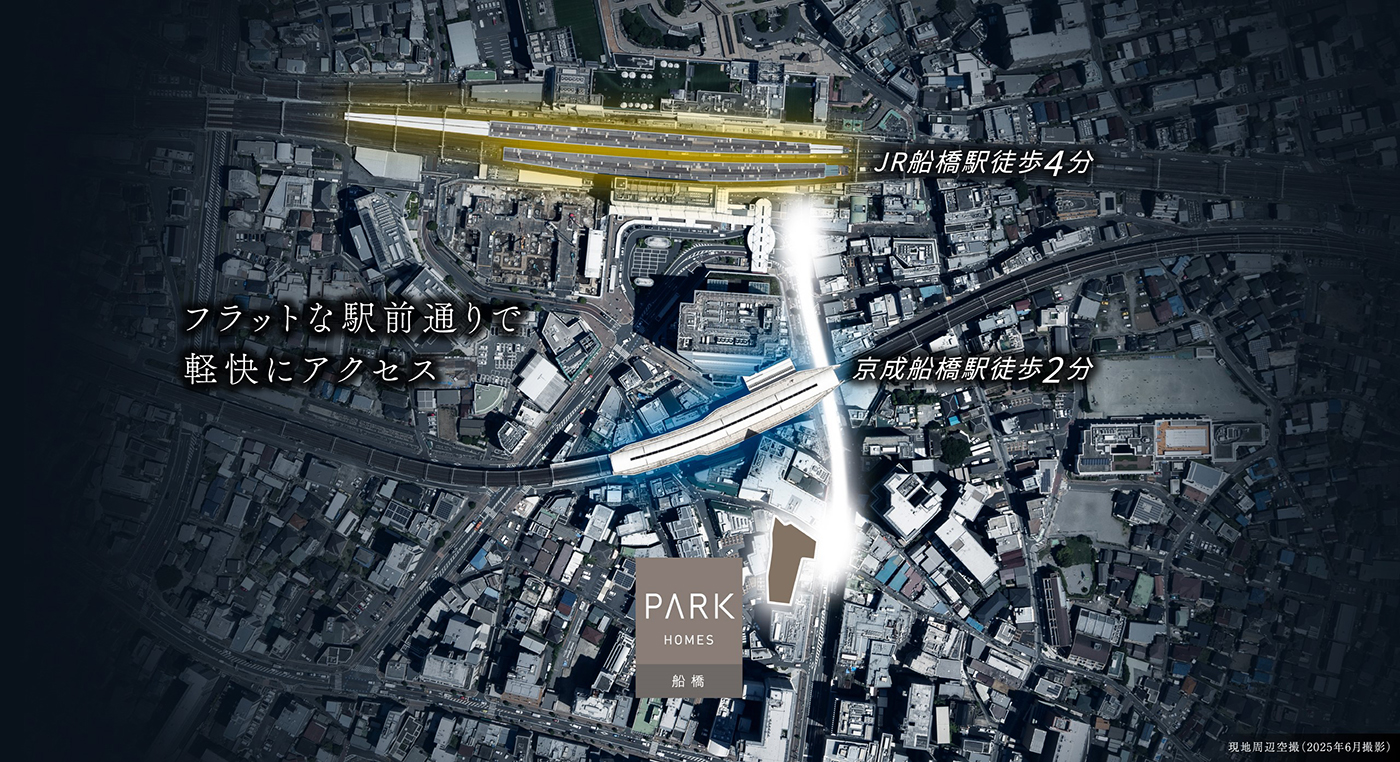 JR中央・総武線、東武野田線「船橋駅」4分、「京成船橋駅」2分の2駅4路線利用可能なアクセス利便